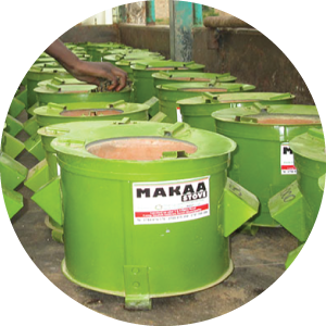 Our improved energy saving stoves brand named Makaa stoves include a fired clay liner with metal claddings, which improves fuel efficiency, enhances combustion conditions, and ensures a better flame stability and systematic airflow. They consume Less Fuel, are long lasting and save energy